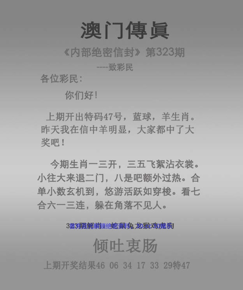 322期:绝杀三尾【1尾-3尾-6尾】开:羊47准